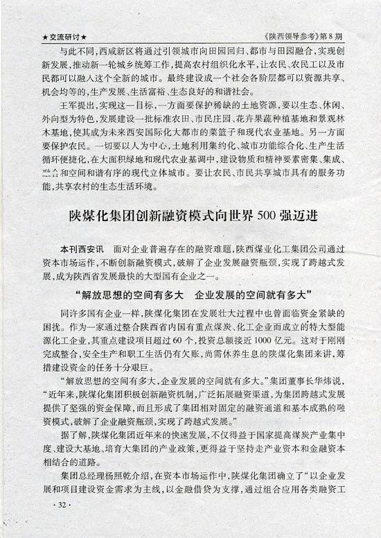 上一條:中國煤炭工業(yè)協(xié)會副會長趙岸青到陜煤化集團調(diào)研 下一條:陜西領(lǐng)導參考:陜煤化集團創(chuàng)新融資模式向世界500強邁進