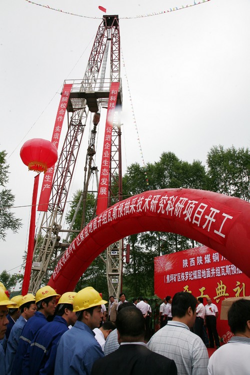 最后,與會領導為開工儀式剪彩。銅川礦業(yè)公司總經(jīng)理宋志剛宣布《焦坪礦區(qū)侏羅紀煤層地面井組瓦斯預抽采技術研究與應用》科研項目開工。(王莉 楊春成)