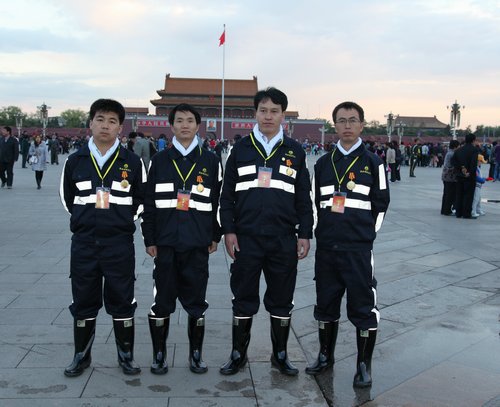 史曉波、陳百歲、張波、楊新民(由左到右)在天安門廣場(chǎng)合影