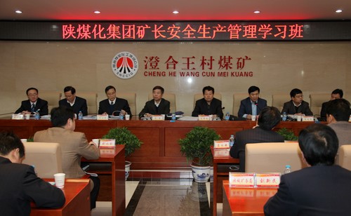 開班儀式上澄合礦業(yè)公司總經(jīng)理樊志斌致辭。與會(huì)人員一起觀看了王村煤礦企業(yè)宣傳片《騰飛》和王村煤礦安監(jiān)信息系統(tǒng)演示。(趙曉燕)