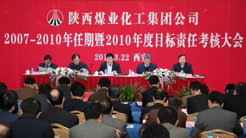 3月22日,省委組織部、省國資委共同組成考核組,對(duì)陜西煤業(yè)化工集團(tuán)公司2007-2010年任期暨2010年度目標(biāo)責(zé)任進(jìn)行考核??己私M成員、集團(tuán)公司領(lǐng)導(dǎo)、集團(tuán)公司所屬單位的主要領(lǐng)導(dǎo)和機(jī)關(guān)部門的負(fù)責(zé)同志以及職工代表140余人參加了會(huì)議。