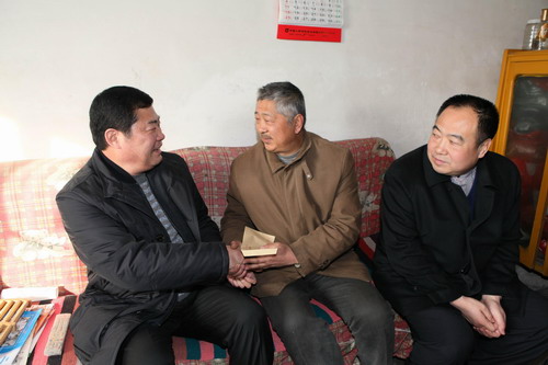 1月13日上午,陜西煤業(yè)化工集團公司紀委書記吳衛(wèi)平一行在陜煤建司黨政負責人向新剛,工會、紀委等相關(guān)部門及雙龍社區(qū)主要負責人的陪同下看望慰問了公司困難職工劉玉蘭、韓銀山、向永亮三家,為他們送去了慰問金,囑咐他們好好生活,保重身體,有什么困難找工會幫助解決,并祝他們新年快樂。(王微)