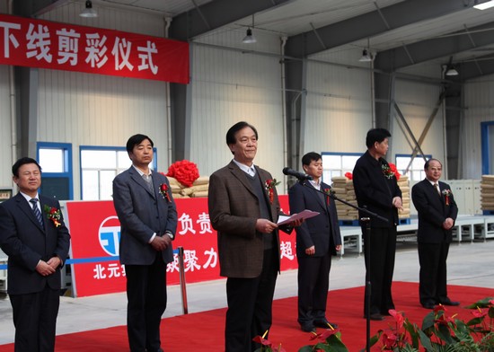 神木縣縣長黃建軍在剪彩儀式上發(fā)表熱情洋溢的講話。他首先代表中共神木縣委、神木縣政府對PVC產(chǎn)品下線表示熱烈的祝賀。他說,今天北元的再次成功證明了解放思想的強(qiáng)大推動(dòng)力,證明了混合所有制的現(xiàn)實(shí)凝聚力,證明了科技創(chuàng)新的旺盛生命力,也為縣民營企業(yè)向現(xiàn)代大型企業(yè)集團(tuán)跨越樹立了新的樣板,更為錦界工業(yè)園區(qū)的發(fā)展提供了強(qiáng)有力的產(chǎn)業(yè)支撐。期望北元人能繼續(xù)發(fā)揚(yáng)創(chuàng)業(yè)精神,早日實(shí)現(xiàn)全線投產(chǎn),并在市場推廣、企業(yè)管理、上市融資等方面取得更大的突破。
