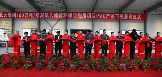 北元化工隆重舉行100萬噸/年聚氯乙烯循環(huán)綜合利用項(xiàng)目PVC產(chǎn)品下線剪彩儀式