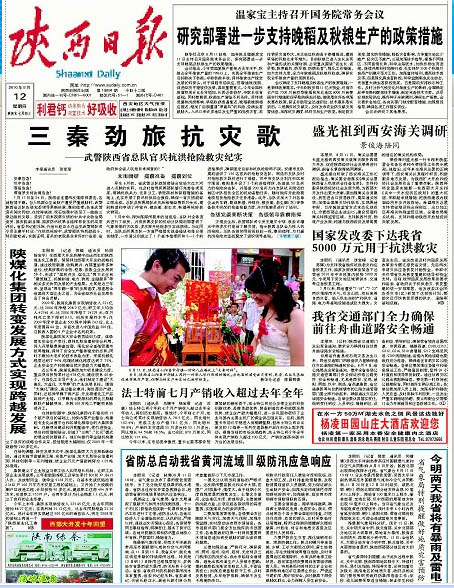 刊登在《陜西日?qǐng)?bào)》2010年8月12日一版