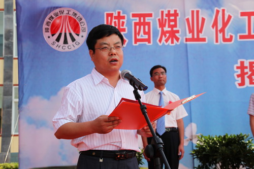 集團(tuán)公司安監(jiān)部經(jīng)理李文革宣讀陜煤化集團(tuán)設(shè)立安全培訓(xùn)中心的文件