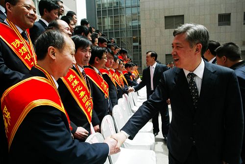 集團(tuán)公司領(lǐng)導(dǎo)與勞動(dòng)模范親切握手