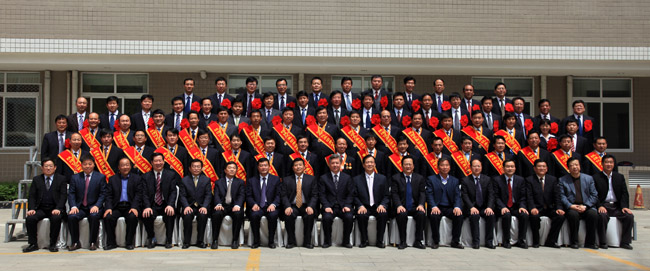 集團(tuán)公司領(lǐng)導(dǎo)與2008—2009年度文明單位代表和勞動(dòng)模范合影留念