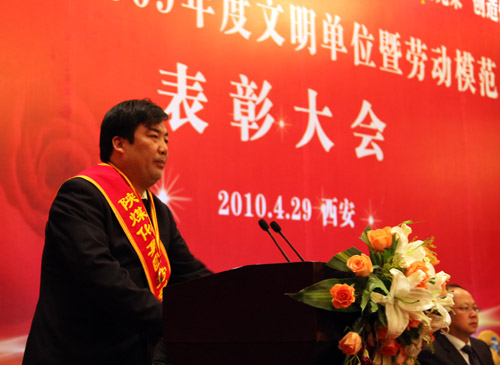 “五一”國際勞動(dòng)節(jié)前夕,陜煤化集團(tuán)2008—2009年度文明單位和勞動(dòng)模范表彰大會(huì)4月29日上午在西安世紀(jì)金源大酒店隆重召開,大會(huì)對兩年來涌現(xiàn)出的31個(gè)文明單位和29名勞動(dòng)模范進(jìn)行了表彰,并動(dòng)員集團(tuán)公司各級組織和全體員工學(xué)習(xí)先進(jìn)事跡,弘揚(yáng)勞模精神,深化文明創(chuàng)建活動(dòng),為集團(tuán)公司實(shí)現(xiàn)又好又快發(fā)展而不懈奮斗。會(huì)議由集團(tuán)公司總經(jīng)理高仰才主持。