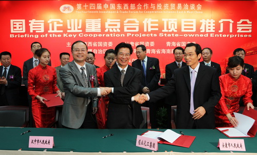 第十四屆中國東西部合作與投資貿(mào)易洽談會,是陜西和西部省市擴大對外開放、拓展交流合作、推動國有企業(yè)外向發(fā)展的一項重要舉措。推介會上,陜西煤業(yè)化工集團及集團下屬單位神木煤化工產(chǎn)業(yè)公司和蒲城清潔能源公司分別與漢中市政府、安康市政府、江蘇煤化工程研究設計院、上海勝幫煤化工技術(shù)公司和美國空氣產(chǎn)品(中國)投資有限責任公司5家企業(yè)代表在煤化工、煉油、物流服務、基礎設施、環(huán)保和節(jié)能等領(lǐng)域項目上簽約了合作協(xié)議。