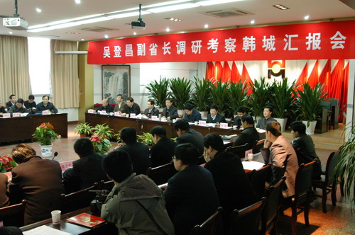 3月4日,陜西省副省長吳登昌帶領(lǐng)省級有關(guān)部門負責(zé)同志,到韓城市視察調(diào)研煤礦安全生產(chǎn)工作。省煤監(jiān)局、陜煤化集團公司、韓城礦務(wù)局、渭南市及韓城市委、市政府有關(guān)領(lǐng)導(dǎo)參加匯報會。