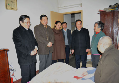 2月7日,陜西煤業(yè)化工集團黨委書記、董事長華煒和總經理高仰才一行來到銅川礦區(qū)慰問送溫暖。在銅川礦務局領導的陪同下,來到桃園礦退休傷殘職工雷金成的家中,看望了雙目失明的雷金成,送去了慰問金和米面油。華煒、高仰才親切地詢問雷金成兩個正在念大學的女兒的生活學習情況,鼓勵她們好好學習。