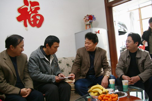 副總經理閔龍(左二)在惠九水的家中慰問