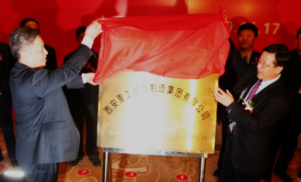 副省長吳登昌和陜西煤業(yè)化工集團(tuán)董事長、黨委書記華煒為西安重工裝備制造集團(tuán)有限公司揭牌