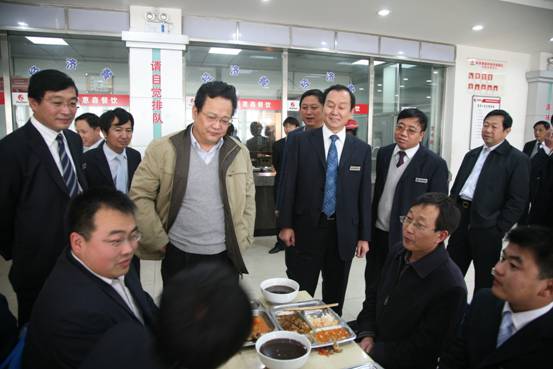 上午,馬富元一行首先來到檸條塔公司總調(diào)度中心,通過礦井實(shí)時監(jiān)控系統(tǒng)查看礦井生產(chǎn)運(yùn)行情況。接著,參觀了職工食堂,在食堂就餐大廳,馬富元詳細(xì)查看了飯菜質(zhì)量和價格,并親切地與就餐員工拉起了家常,當(dāng)?shù)弥久吭陆o每位員工補(bǔ)貼450元餐費(fèi)時,他說,一線職工工作比 較辛苦,要讓大家吃飽吃好。走出職工食堂,馬富元一行又來到檸條塔公司1號公寓樓員工宿舍,仔細(xì)查看房間設(shè)施,當(dāng)看到宿舍內(nèi)水、電、暖、網(wǎng)齊全,并設(shè)有獨(dú)立衛(wèi)生間,24小時供應(yīng)熱水后,高興的說,現(xiàn)代化礦井不僅在裝備上、工藝上要達(dá)到現(xiàn)代化,在后勤保障上也要達(dá)到現(xiàn)代化,要讓職工有一個良好的生活環(huán)境,才能真正體現(xiàn)以人為本的宗旨。他還關(guān)切地詢問了剛參加工作的大學(xué)畢業(yè)生的收入情況,風(fēng)趣地說:“一個月7000多元工資,攢上一年就夠娶媳婦了!”