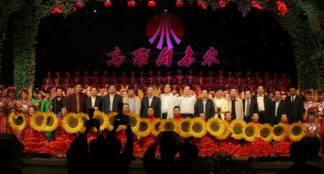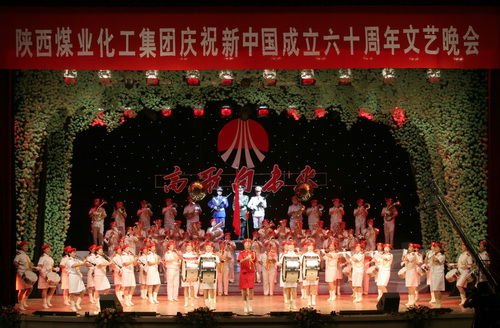 隨后他宣布陜西煤業(yè)化工集團(tuán)公司慶祝新中國(guó)成立60周年文藝晚會(huì)開始。激揚(yáng)澎湃的國(guó)歌聲隨即響起,全體起立高歌。