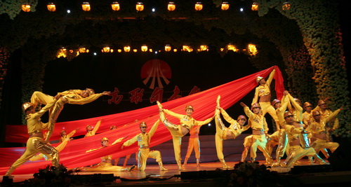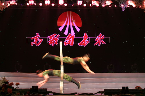 一開場(chǎng),銅川礦務(wù)局軍樂奏出了祖國(guó)大地山川壯麗,人民迎接社會(huì)主義到來的無比興奮的心情,贊美祖國(guó)工農(nóng)業(yè)生產(chǎn)蒸蒸日上的情景及廣大人民充滿自豪感和對(duì)祖國(guó)繁榮昌盛的期盼與歌頌,這支剛剛組建才26天的職工軍樂隊(duì)所有隊(duì)員拼出所有的力量,把自己的激情都化作在對(duì)祖國(guó)的滿腔熱愛和無限崇敬中,如此的壯觀場(chǎng)面令人激動(dòng)不已,眼前頓時(shí)浮現(xiàn)洶涌奔流的黃河之水天上來的畫面。無論是彬長(zhǎng)公司的雜技《鉆圈》、或者陜北礦業(yè)公司的舞蹈《金嗩吶》、還是韓城礦務(wù)局歌伴舞《礦工萬歲》、以及渭河煤化工集團(tuán)公司音詩(shī)舞《跨越》,整臺(tái)晚會(huì)高潮迭起,演員激情澎湃,觀眾歡呼雀躍。在氣勢(shì)磅礴的歌舞聲中,我們仿佛聽到了共和國(guó)鏗鏘的腳步聲,在昭示著我們偉大祖國(guó)翻天覆地的巨大變化,仿佛看到陜西煤業(yè)化工集團(tuán)正邁著矯健的步伐以飽滿的精神狀態(tài)迎接祖國(guó)的生日,走向更加輝煌燦爛的明天的場(chǎng)面。