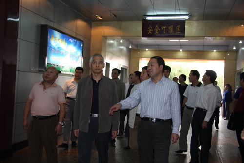 圖為韋國海專員在陜西省煤炭局副局長及韓城局局長的陪同下,參觀象山礦井安全文化長廊。 (丁運華 王 玉)