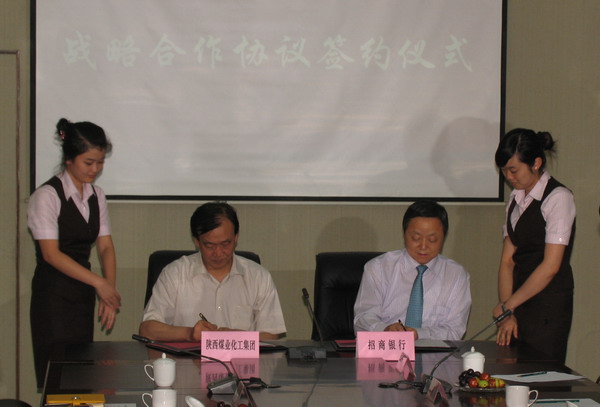 8月20日下午,招商銀行總行行長(zhǎng)助理王慶彬、西安分行行長(zhǎng)王冰劍帶領(lǐng)總行、分行有關(guān)人員來(lái)到陜西煤業(yè)化工集團(tuán)公司,與該集團(tuán)公司黨委書(shū)記、董事長(zhǎng)華煒,總經(jīng)理高仰才,副總經(jīng)理尚建選,董事吳繼亮和集團(tuán)有關(guān)部門(mén)人員進(jìn)行了座談,并舉行了戰(zhàn)略合作協(xié)議簽約儀式。
