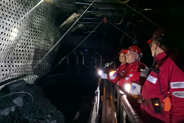 雷鐵山深入該礦井下42221工作面等區(qū)域,實地檢查采掘接續(xù)工作推進(jìn)情況,并聽取了該礦圍繞現(xiàn)場安全管理、生產(chǎn)組織、42227備采工作面、42228掘進(jìn)工作面、巷道維修、安全生產(chǎn)標(biāo)準(zhǔn)化建設(shè),以及下一步工作舉措的匯報,就礦井安全生產(chǎn)過程中面臨的重點、難點問題,與該礦領(lǐng)導(dǎo)進(jìn)行了深入探討交流。