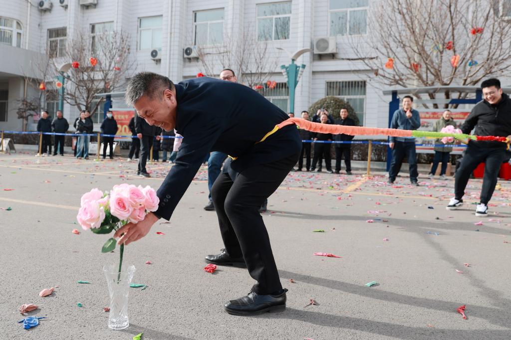 在“踩氣球”環(huán)節(jié),隨著掛于機(jī)關(guān)院的五彩氣球落下,瞬時(shí)點(diǎn)燃了活動(dòng)的熱潮,大家紛紛跑進(jìn)氣球掉落區(qū)域用力踩腳氣球,“幸運(yùn)者”還獲得了氣球里放置的獎(jiǎng)品,為新年新的開(kāi)始贏得“好彩頭”。