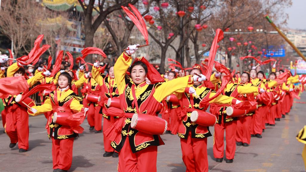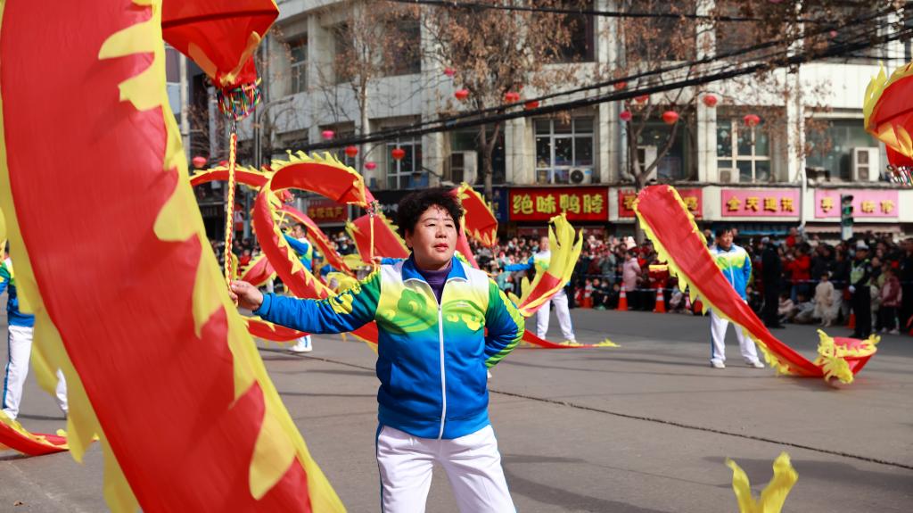 活動(dòng)現(xiàn)場(chǎng),彩旗招展,鑼鼓喧天,舞獅、劃旱船、扭秧歌等特色表演輪番上陣,提前設(shè)置好的觀演區(qū)聚滿了觀眾,掌聲、喝彩聲、歡笑聲匯成一片,處處洋溢著歡樂喜慶鬧元宵的景象。