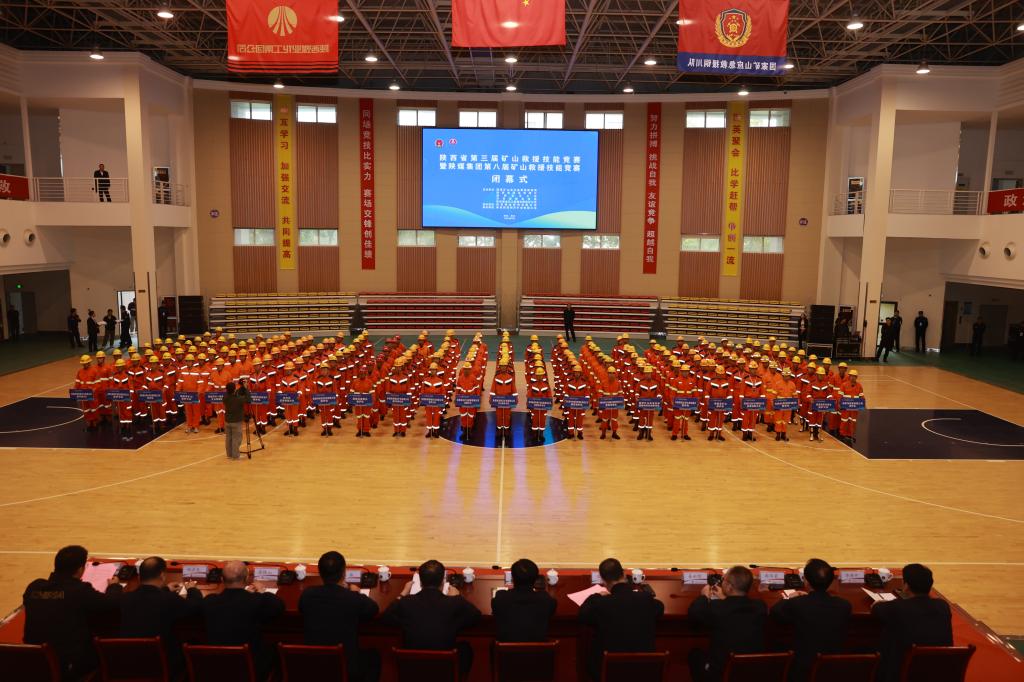 國家礦山安全監(jiān)察局陜西局二級巡視員王忠彬,國家礦山安全監(jiān)察局陜西局救援指揮中心主任劉百強,陜西煤業(yè)副總經理張森安全環(huán)保監(jiān)察部經理姜永明,公司黨委書記、董事長雷鐵山,黨委副書記、總經理周華榮,董事、副總經理邢彥民等領導出席開幕式。競賽裁判員、各參賽隊指戰(zhàn)員參加了閉幕式。