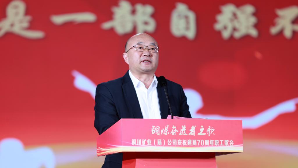 公司黨委書記、董事長(zhǎng)雷鐵山致辭中指出,銅煤的70 年,是一部不畏艱難、催人奮進(jìn)、自強(qiáng)不息的奮斗史,70 年來(lái),銅煤人艱苦創(chuàng)業(yè)、無(wú)私奉獻(xiàn),鑄就不朽豐碑。以堅(jiān)強(qiáng)的毅力和勤勞的雙手,在舊同官煤礦基礎(chǔ)上,建成了西北地區(qū)重要的能源基地,煤炭產(chǎn)量從建局初期的30萬(wàn)噸躍升到千萬(wàn)噸,資產(chǎn)規(guī)模增長(zhǎng)了541倍,書寫了“從無(wú)到有、由弱到強(qiáng)”銅煤傳奇。70年來(lái),銅煤人守正創(chuàng)新、務(wù)實(shí)擔(dān)當(dāng),書寫奮斗華章。從建局初期在群山溝壑、地層深處戰(zhàn)天斗地,到新時(shí)代科技賦能,建設(shè)智能礦井、打造智慧礦區(qū),變化的是設(shè)備技術(shù)的迭代飛躍,不變的是銅煤礦工以?shī)^斗彰顯忠誠(chéng),以實(shí)干書寫輝煌的初心使命。70年來(lái),銅煤人初心不改、逐夢(mèng)前行,繪就幸福底色。一系列民生工程讓礦區(qū)舊貌換新顏,職工生活品質(zhì)大幅提升,和諧礦區(qū)深情演繹,民生答卷亮點(diǎn)紛呈。70年來(lái),銅煤人賡續(xù)血脈、以文育人,凝聚奮進(jìn)力量?!耙皇赘琛⒁槐緯?、一座城、一條紅色血脈”是銅煤獨(dú)有的文化符號(hào),更是永不褪色的精神標(biāo)識(shí)。70年來(lái),銅煤人培根鑄魂、黨建引領(lǐng),把穩(wěn)發(fā)展航向?!奥?tīng)黨話、跟黨走”是銅煤發(fā)展的根本保證,黨建工作成為破解難題、引領(lǐng)發(fā)展的“定盤星”,企業(yè)始終沿著正確方向行穩(wěn)致遠(yuǎn)。