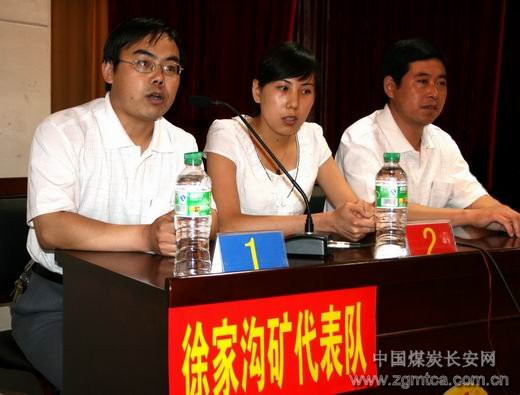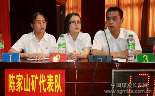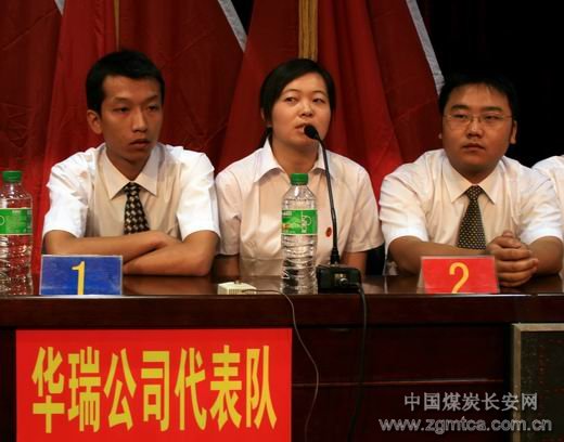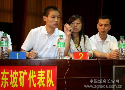 參加決賽的是下石節(jié)礦、東坡礦、陳家山礦、徐家溝礦、直屬機(jī)關(guān)工委、鐵運(yùn)公司、華瑞公司、多經(jīng)公司等9支代表隊,抽簽決定坐次,設(shè)立了仲裁委員會,保證競賽的公平。競賽分為個人必答題、集體必答題、搶答題、風(fēng)險題四部分。