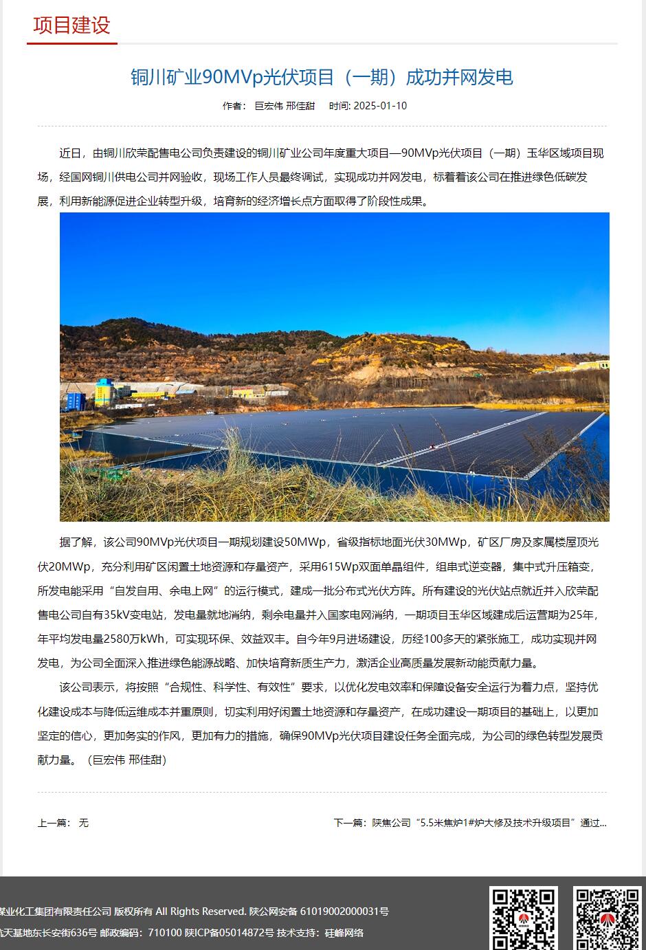 上一條:陜西國資| 陜煤集團銅川礦業(yè)90MVp光伏項目(一期)成功并網(wǎng)發(fā)電 下一條:三秦網(wǎng)| 陳家山礦:從“零”開始 向“零”奮進