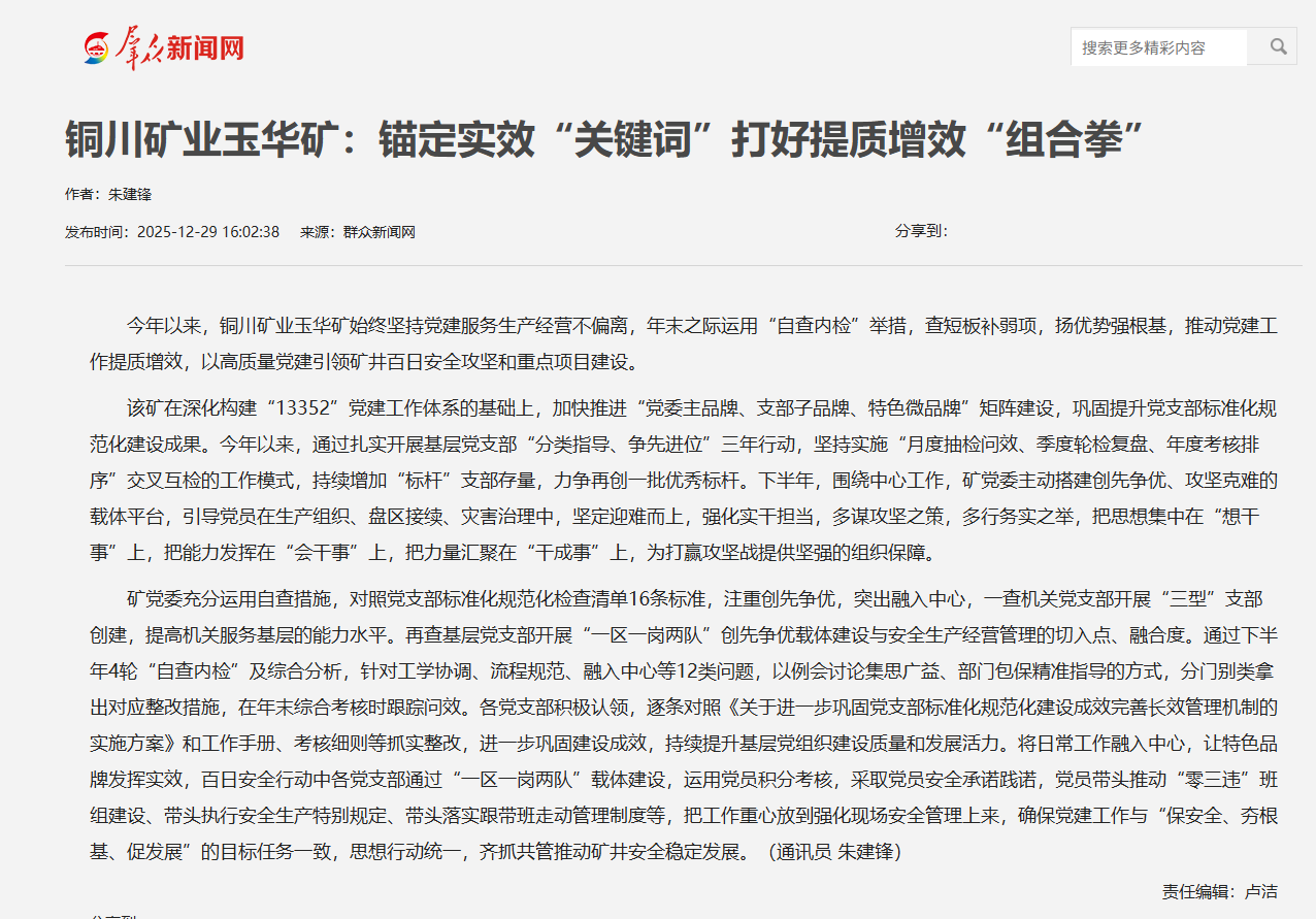 上一條:中華網(wǎng)| 陳家山礦:多彩活動慶元旦 歡歡喜喜迎新年 下一條:群眾新聞網(wǎng)| 玉華礦:“井井有條”保暢通提升運輸推進盤區(qū)建設(shè)