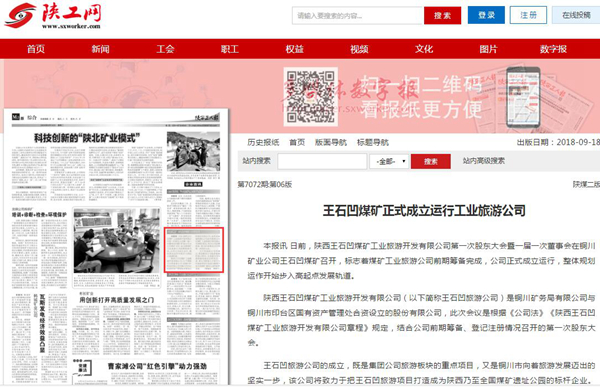 王石凹煤礦正式成立運(yùn)行工業(yè)旅游公司