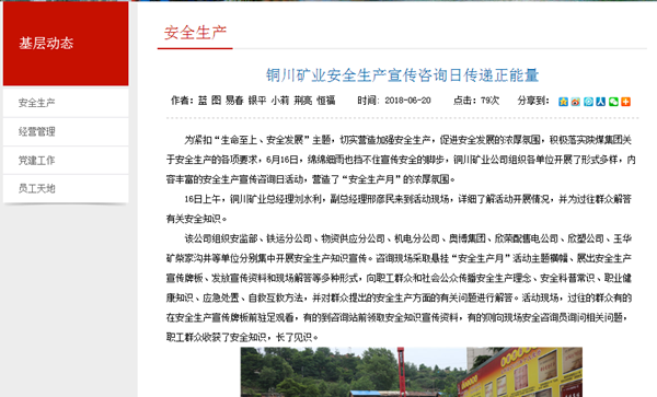 該公司組織安監(jiān)部、鐵運分公司、物資供應分公司、機電分公司、奧博集團、欣榮配售電公司、欣塑公司、玉華礦柴家溝井等單位分別集中開展安全生產(chǎn)知識宣傳。咨詢現(xiàn)場采取懸掛“安全生產(chǎn)月”活動主題橫幅、展出安全生產(chǎn)宣傳牌板、發(fā)放宣傳資料和現(xiàn)場解答等多種形式,向職工群眾和社會公眾傳播安全生產(chǎn)理念、安全科普常識、職業(yè)健康知識、應急處置、自救互救方法,并對群眾提出的安全生產(chǎn)方面的有關問題進行解答?;顒蝇F(xiàn)場,過往的群眾有的在安全生產(chǎn)宣傳牌板前駐足觀看,有的到咨詢站前領取安全知識宣傳資料,有的則向現(xiàn)場安全咨詢員詢問相關問題,職工群眾收獲了安全知識,長了見識。