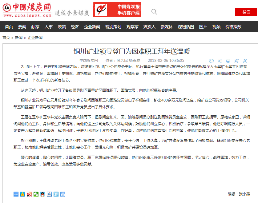 從這天起,銅川礦業(yè)拉開了各級領導慰問百里礦區(qū)困難職工、困難黨員,向他們祝福新春的序幕。