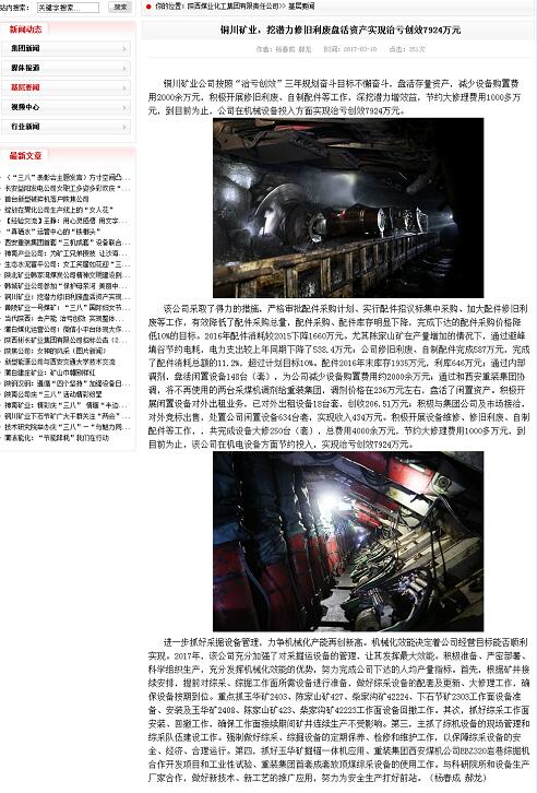 陜煤集團網(wǎng)站 2017年3月10日 基層要聞欄目