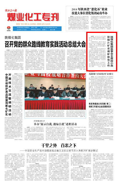11月11日、12日,陜西煤業(yè)化工集團(tuán)公司監(jiān)事會(huì)主席段小昌一行5人深入銅川礦業(yè)公司調(diào)研指導(dǎo)工作。