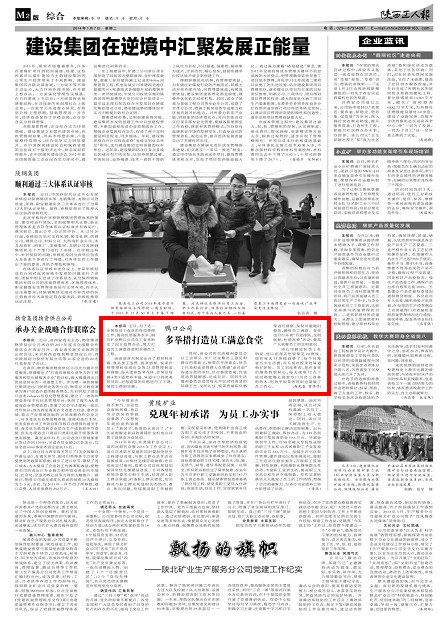 該公司掘進隊員工杜明說,他以前每天吃飯要花20塊錢,現(xiàn)在每天15塊錢就夠了,每個月能省不少生活費,而且現(xiàn)在飯菜的味道相對好轉(zhuǎn)。員工劉連勝說,現(xiàn)在食堂的服務(wù)特別貼心,每天夜里12點下班時都能喝上食堂專門為員工準備的熱水,吃熱乎飯菜的同時也溫暖了員工的心。