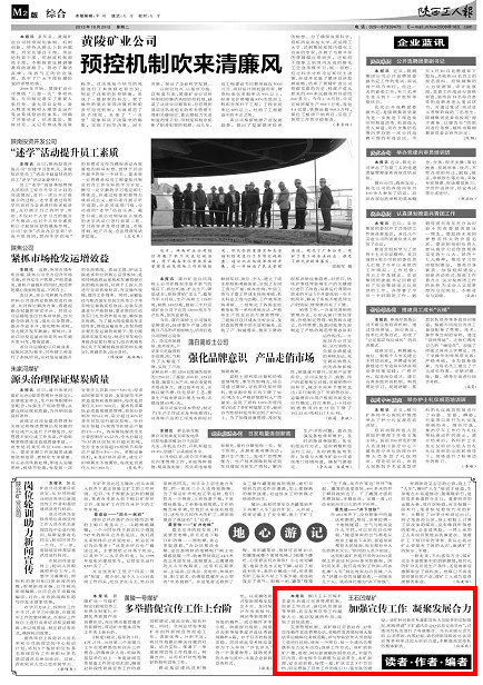 完善管理機(jī)制。該礦修訂完善對(duì)內(nèi)、對(duì)外宣傳稿件獎(jiǎng)懲管理辦法,將稿件發(fā)表情況納入基層單位精細(xì)化考核范疇,并與專職宣傳人員流程工資進(jìn)行掛鉤,使每一個(gè)單位、每一個(gè)通訊員都既有壓力又有動(dòng)力;創(chuàng)新工作方式。該礦創(chuàng)新礦廣播、電視、網(wǎng)站新聞稿件制作方式,豐富節(jié)目?jī)?nèi)容,將電視節(jié)目調(diào)整為運(yùn)動(dòng)養(yǎng)生、本礦新聞、安全說說看、每周一星、礦區(qū)文藝5個(gè)節(jié)目檔,切實(shí)增強(qiáng)了宣傳工作的吸引力;強(qiáng)化隊(duì)伍建設(shè)。該礦針對(duì)新任專兼職宣傳人員較多的實(shí)際情況,積極搭建“王礦通訊員QQ 信息交流平臺(tái)”,對(duì)通訊員隊(duì)伍進(jìn)行了有效整合。先后采取以會(huì)代培、以老帶新、內(nèi)部對(duì)標(biāo)、請(qǐng)名師指導(dǎo)和送出去培訓(xùn)等多種形式加大培訓(xùn)力度,不斷提高宣傳隊(duì)伍整體素質(zhì)。