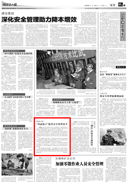 銅川礦業(yè)陳家山礦在企業(yè)發(fā)展中,高度重視安全工作,積極創(chuàng)新管理方法,充分發(fā)揮好“四面鏡子”的作用,消除隱患,預(yù)防事故發(fā)生,確保安全生產(chǎn)工作順利開展。
