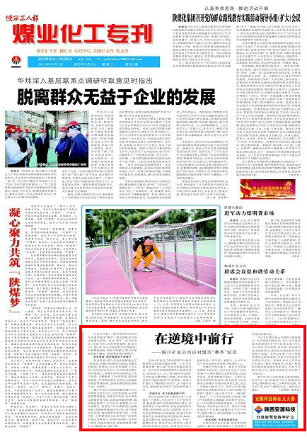 陜西工人報(bào) 2013年10月1日 頭版 從去年開始,一場突如其來而又持久不退的煤市“寒冬”,使全國煤炭市場出現(xiàn)重大逆轉(zhuǎn)。面對“寒冬”,是苦練內(nèi)功、化危為機(jī),還是等靠要熬、被動應(yīng)對?銅川礦業(yè)公司黨政給出的答案是:依靠管理創(chuàng)新、深挖內(nèi)部潛力,努力在砥礪進(jìn)取中趟出一條逆勢奮進(jìn)的新路子。全員參戰(zhàn)抓好煤質(zhì)這個(gè)命根子