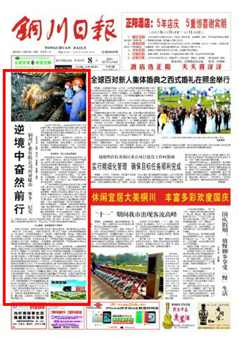 銅川日報 2013年10月8日 頭版頭條