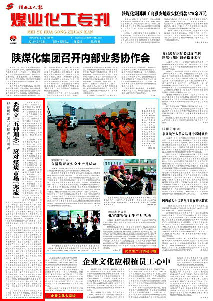 楊照乾結(jié)合各單位實際提出要求,韓城礦業(yè)公司要調(diào)整產(chǎn)品結(jié)構(gòu),加快礦井升級改造,提高11#煤的開采速度,加強每個過程、每個環(huán)節(jié)、每個崗位的管理,不斷提升市場競爭力;澄合礦業(yè)公司要積極走煤電聯(lián)營道路,在與其他電力企業(yè)積極合作的同時,建設自己的電廠,使新區(qū)產(chǎn)能實現(xiàn)合理釋放;蒲白礦業(yè)公司要深刻分析自身存在的優(yōu)勢和不足,認真研究今后的發(fā)展方向和發(fā)展方式,保持健康穩(wěn)步的發(fā)展態(tài)勢;銅川礦業(yè)公司在市場競爭中要與相關(guān)企業(yè)加強合作,充分考慮東區(qū)礦和北區(qū)礦各自發(fā)展能力,做好轉(zhuǎn)體制、調(diào)機制工作,提升洗精煤產(chǎn)量。