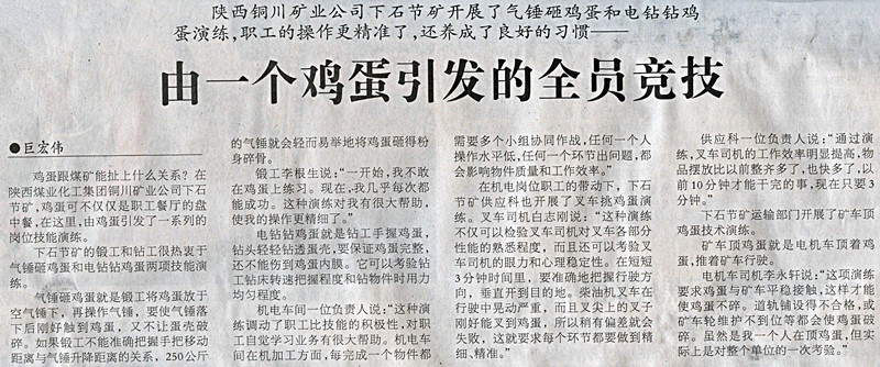 ● 4月8日“中國煤炭報”第二版刊發(fā)《由一個雞蛋引發(fā)的全員競技》(作者:巨宏偉)