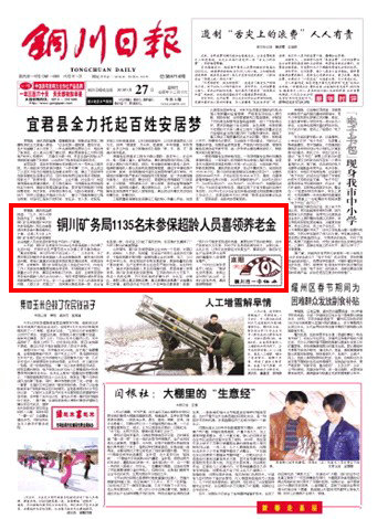 三年前,銅川礦務(wù)局首次為10464名未參保超齡人員辦理了生活補(bǔ)貼,史家河社區(qū)尹雪芳老太太手捧工資卡激動(dòng)地說(shuō):“真沒(méi)有想到,我70歲時(shí)終于成公家人了?!比甓鄟?lái),為了貫徹落實(shí)好解決未參保超齡人員生活保障政策,解決他們的養(yǎng)老問(wèn)題,使他們真真切切地享受到改革發(fā)展的成果,實(shí)現(xiàn)老有所養(yǎng),安享晚年,銅川礦務(wù)局先后投入資金近500萬(wàn)元,700余名工作人員參加收集整理完善各種資料,時(shí)間跨度達(dá)半個(gè)世紀(jì),數(shù)量達(dá)10萬(wàn)多張,填寫(xiě)各種表格5萬(wàn)多張。目前,全局享受退休養(yǎng)老金的超齡人員已達(dá)15000余人,每年將要領(lǐng)取的退休養(yǎng)老金和取暖費(fèi)達(dá)1億6千萬(wàn)元。在一個(gè)企業(yè)解決一萬(wàn)多人的退休養(yǎng)老問(wèn)題,人數(shù)之多、范圍之廣,在陜煤化集團(tuán)是第一家,在全省也是第一家。在社會(huì)上引起了強(qiáng)烈反響,在百里礦區(qū)贏得了廣大職工群眾的高度贊譽(yù)。
