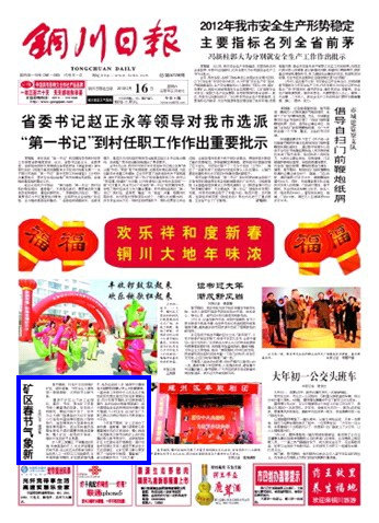 銅川日報 2013年2月16日 頭版