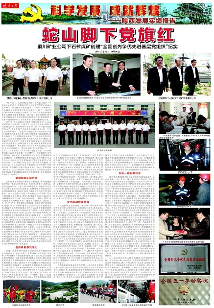 近年來(lái),該礦黨委在上級(jí)部門的正確領(lǐng)導(dǎo)下,認(rèn)真貫徹黨的十七大和十七屆五中、六中全會(huì)精神,以科學(xué)發(fā)展觀為指導(dǎo),緊緊圍繞礦井中心工作,著力提升黨建管理水平,充分發(fā)揮了黨組織政治核心作用,進(jìn)一步夯實(shí)基層組織建設(shè),以創(chuàng)先爭(zhēng)優(yōu)活動(dòng)服務(wù)礦井安全生產(chǎn)建設(shè),推進(jìn)了企業(yè)文化工作、民生工程不斷向縱深發(fā)展,為企業(yè)各項(xiàng)工作持續(xù)健康發(fā)展提供了堅(jiān)強(qiáng)的思想和政治保證。企業(yè)先后榮獲全國(guó)“文明礦”、“雙十佳”煤礦、全煤系統(tǒng)“文明單位”、企業(yè)文化建設(shè)優(yōu)秀單位、省思想政治工作先進(jìn)單位、省模范職工之家、省煤業(yè)集團(tuán)紀(jì)檢監(jiān)察工作先進(jìn)單位,多次被省、市、公司評(píng)為先進(jìn)基層黨組織、先進(jìn)黨委等稱號(hào)。特別是2011年,該礦創(chuàng)出了“一個(gè)第一”、“三個(gè)新高”、“五個(gè)顯著”的優(yōu)異成績(jī)。即:榮獲銅川礦業(yè)公司歷史上第一個(gè)全國(guó)“五一勞動(dòng)獎(jiǎng)狀”;全年產(chǎn)銷煤炭193.8萬(wàn)噸,產(chǎn)銷量創(chuàng)歷史新高;全年圓滿完成了經(jīng)營(yíng)指標(biāo),經(jīng)營(yíng)利潤(rùn)創(chuàng)歷史新高;礦業(yè)在崗職工年人均收入82368元,創(chuàng)歷史新高;安全管理成效顯著,礦井安全實(shí)現(xiàn)了“零”目標(biāo);和諧穩(wěn)定工作實(shí)現(xiàn)了無(wú)越級(jí)、無(wú)群體上訪,礦區(qū)未發(fā)生治安刑事案件;經(jīng)營(yíng)管理工作成效顯著,全年修舊利廢節(jié)約資金2341萬(wàn)元,煤質(zhì)增收1867萬(wàn)元;建成了供應(yīng)科、車間、綜采隊(duì)三個(gè)企業(yè)文化示范單位;綠色家園建設(shè)實(shí)現(xiàn)了園林化管理,企業(yè)發(fā)展已全面步入“快車道”。