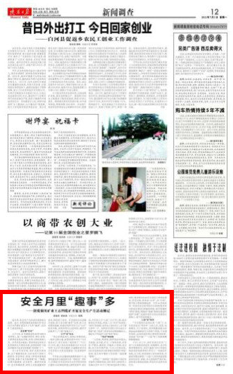 陜西日?qǐng)?bào) 2012年7月2日 第十二版 (席選民 彎桂清 本報(bào)記者 程剛)連日來(lái),安全生產(chǎn)月活動(dòng)開展得如火如荼。這不,在陜西煤化集團(tuán)銅川礦業(yè)公司王石凹煤礦就發(fā)生了幾件“趣事”,成為礦工談?wù)摰慕裹c(diǎn)。安全帽“實(shí)名”