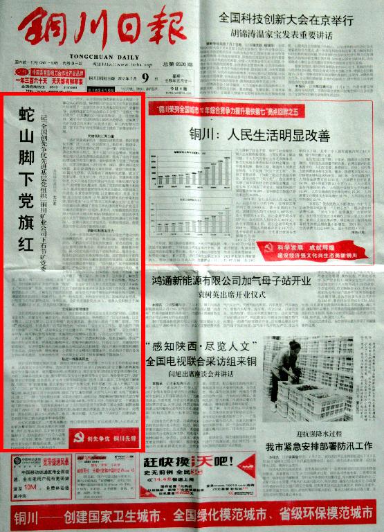 銅川日報 2012年7月9日 頭版頭條