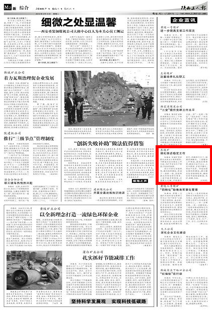 陜西工人報 2012年5月15日 煤業(yè)二版
