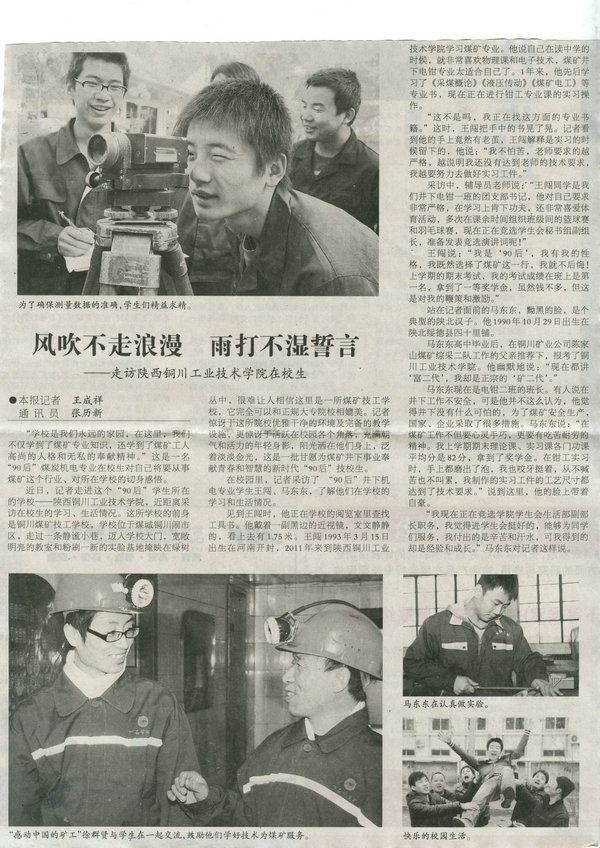 在校園里,記者采訪了 “90后”井下機電專業(yè)學(xué)生王闖、馬東東,了解他們在學(xué)校的學(xué)習(xí)和生活情況。